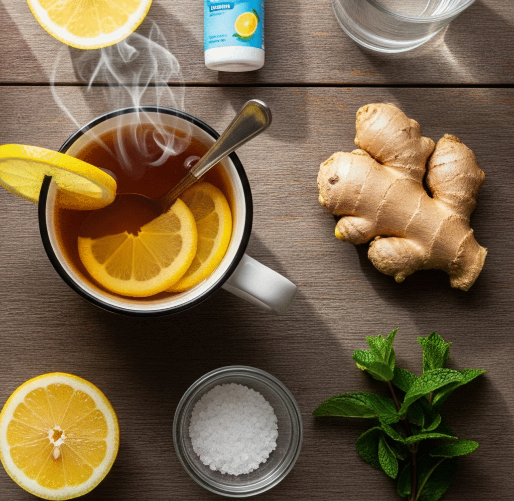 - Honey and warm tea – coats the throat and soothes irritation.